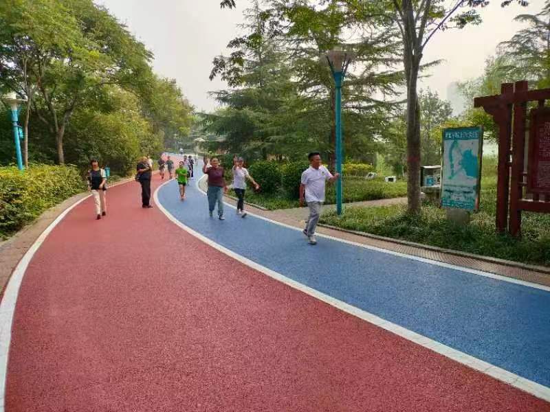 本網(wǎng)訊  初秋的邯鄲,天高氣爽。清晨的龍湖,涼風(fēng)習(xí)習(xí)。公園內(nèi),彩色的環(huán)形跑道,處處歡聲笑語,隨處可見穿著白色T恤衫的“運(yùn)動健將”揮汗前行。